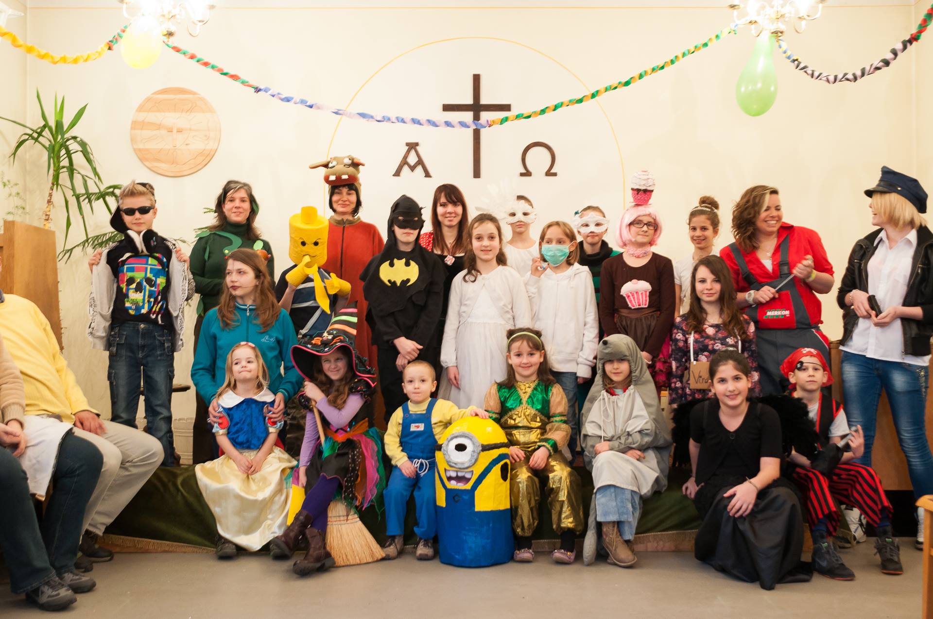 Március 1-jén volt idén a farsang! A délután játékkal indult: képek alapján egy-egy jézusi példázatot kellett kitalálniuk, majd elmesélniük a csapatoknak. Ezután néhány vidám ének erejéig a VecsErNye kórus lépett a színre. A szokásos jelmezverseny és a tombola mellett most néptáncolhattak is a résztvevők: egy avatott néptáncos tanított egy-két lépést a lelkes vállalkozóknak. De az ízlelőbimbók sem pihentek, hiszen az elmaradhatatlan süteményversenyben idén nemcsak a tapasztalt zsűritagok, hanem a közönség is szavazhatott kedvencére! És jelmezötletben sem volt hiány: volt itt Legóember, Virágoskert és Süsü, a sárkány is. Sőt egy jelenetet is láthattunk a Tanú című filmből Virág elvtárs, Pelinkán elvtárs és Gogolák elvtársnő szereplésével. Képek a Képek a galériában.